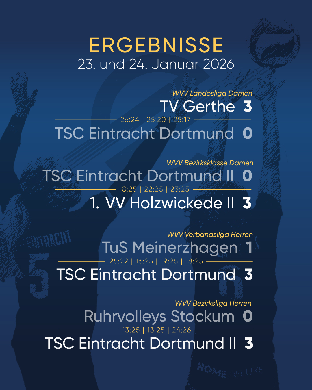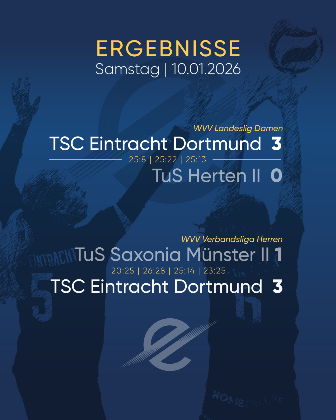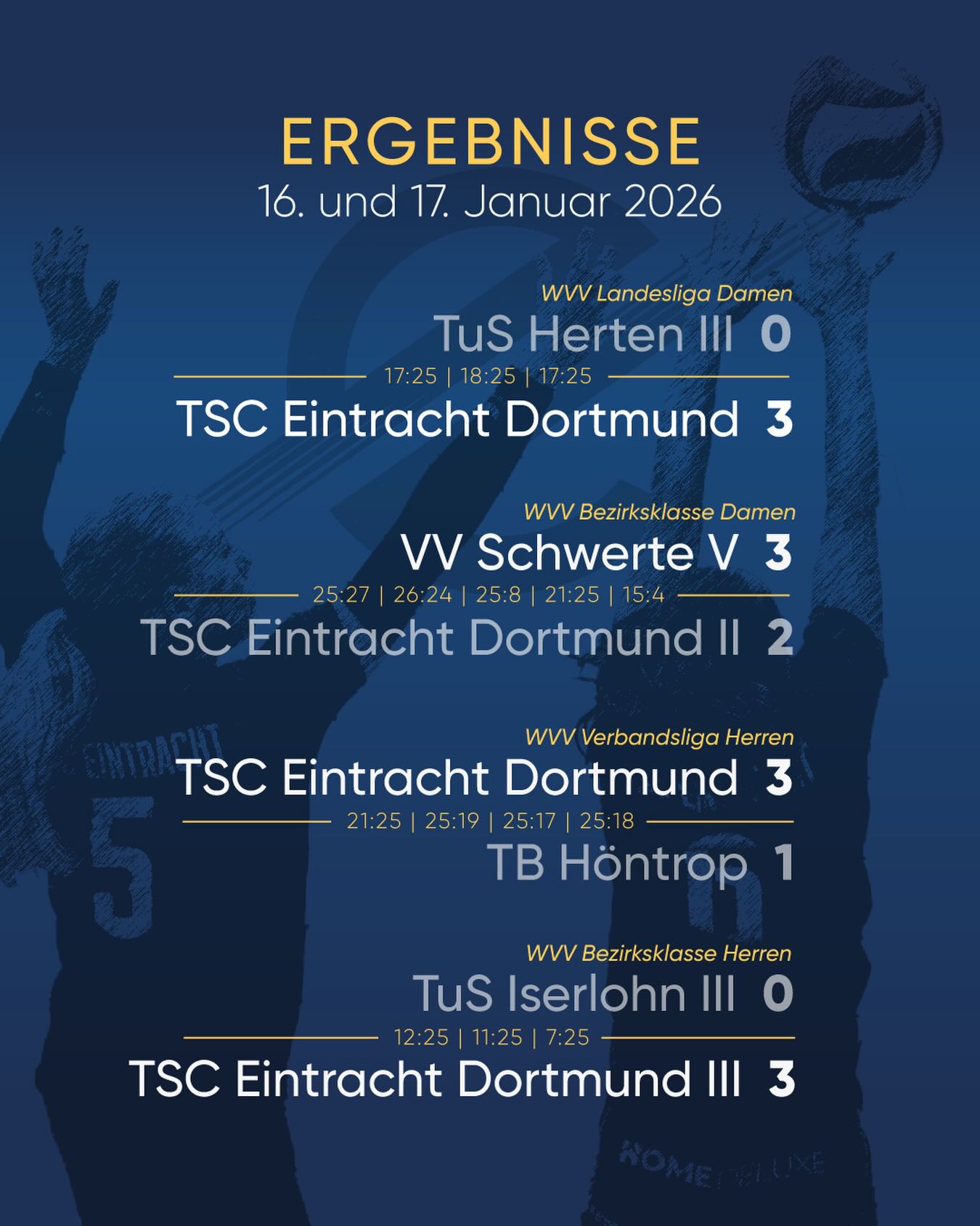 Unsere @tsc.eintracht.volleyball.damen gewinnen ihr Spiel souverän und kämpfen am Wochenende gegen TV Gerthe im Spitzenspiel um Platz 1 der Liga!